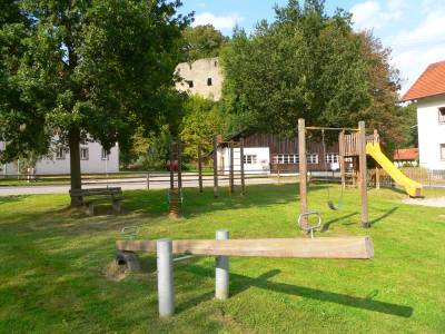 In Neuhaus befindet sich ein kleiner Kinderspielplatz mit Schaukel, Rutsche, Wippe und Spielgeräten.